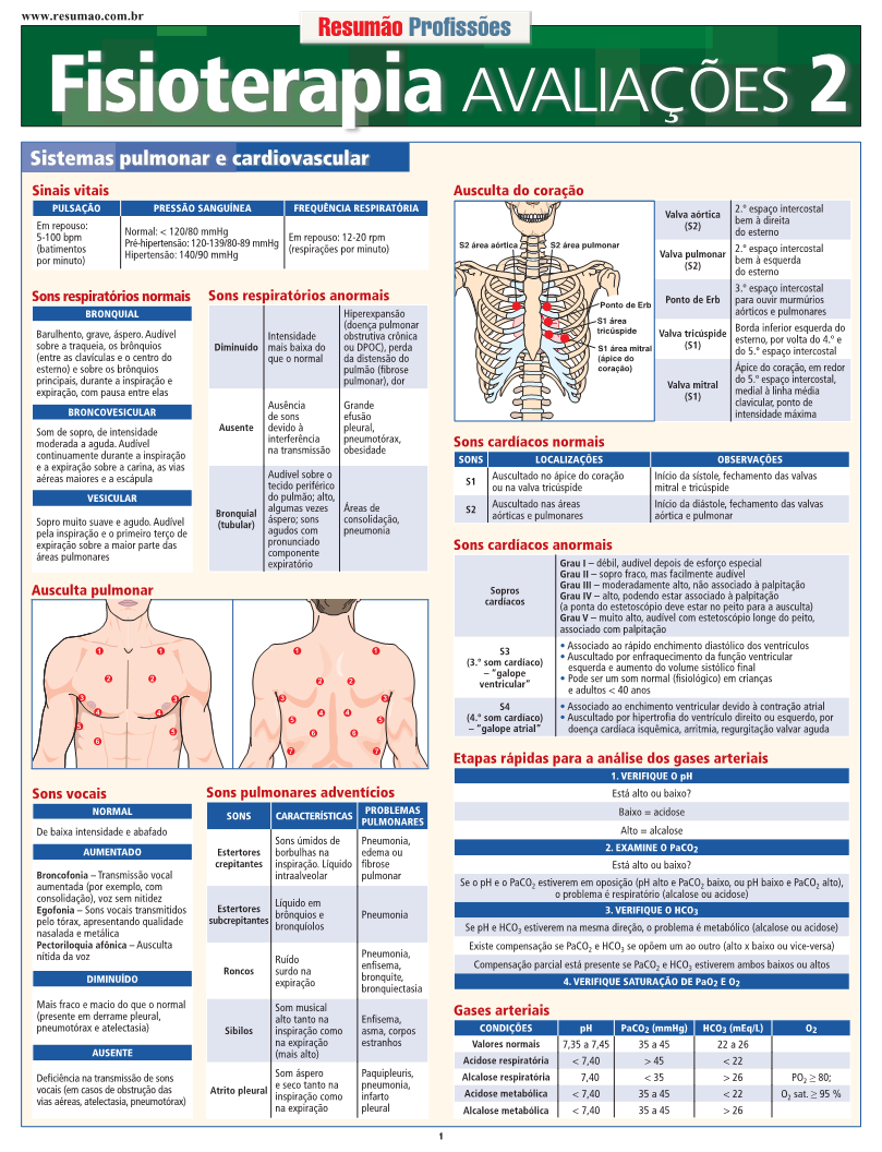 Atenção: por erro de digitação, no quadro sinais vitais, o valor da pulsação correto é de 60 a 100 batimentos por minuto em repouso. Pedimos desculpas pelo erro, que será corrigido na próxima tiragem do Resumão.