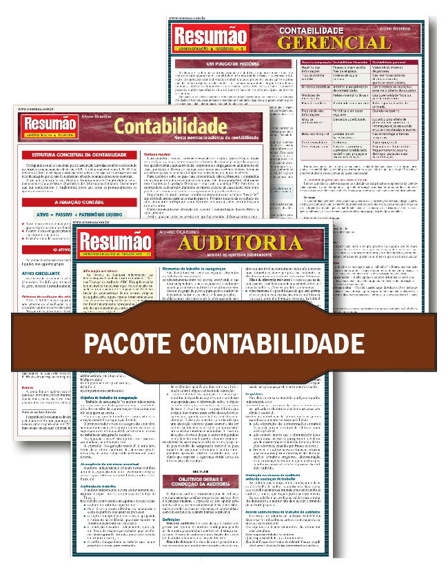 A contabilidade é uma importante ferramenta para entender melhor as empresas. Ela traça um retrato da situação financeira das companhias e, com isso, auxilia os gestores na tomada de decisão sobre os rumos dos negócios. Esse combo, formado pelos Resumões Contabilidade, Contabilidade Gerencial e Auditoria, traz os conceitos mais importantes dessas matérias e serve para estudantes e gestores, ou mesmo para funcionários dessa área em grandes empresas. Tudo isso com um desconto especial!