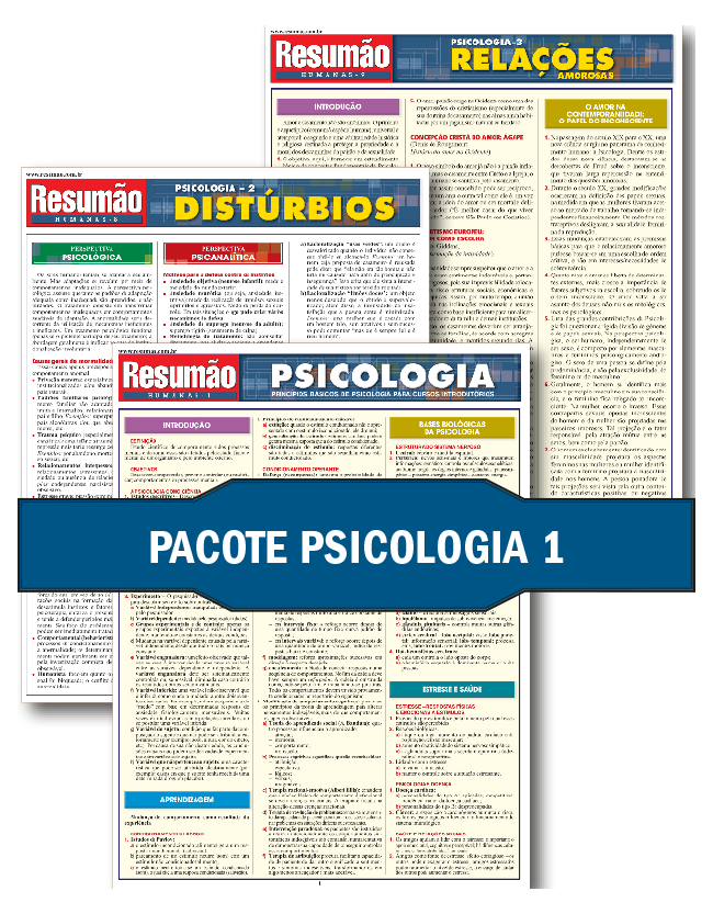 Psicologia, Psicologia 2 – Distúrbios e Psicologia 3 – Relações Amorosas são os três títulos desse pacote. Os conceitos fundamentais que os estudantes precisam para aprender, estudar e relembrar – e com um preço especial para quem leva os três juntos