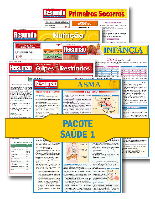 Um combo de Resumões que você precisa ter em casa. Primeiros socorros, Gripes e resfriados, Nutrição, Asma e Infância são títulos que estão prontos para ajudar na hora da dúvida e completar a sua biblioteca, com um desconto especial!