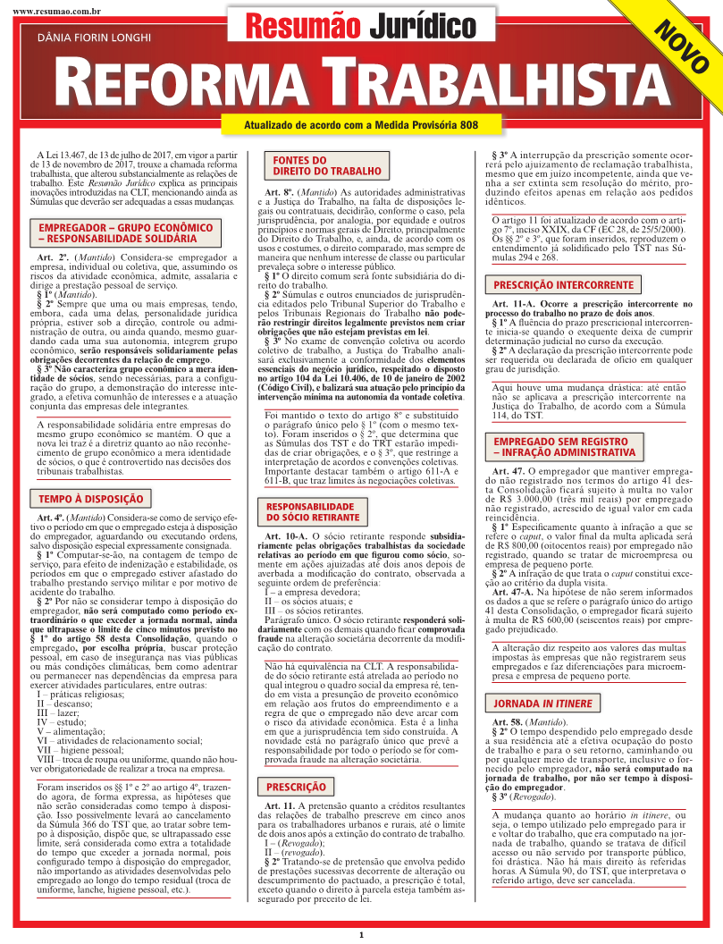 O mais novo título da coleção Resumão Jurídico explica as principais mudanças da Reforma Trabalhista, aprovada em julho de 2017, que provocou profundas alterações nas relações de trabalho. O que exatamente vai alterar a vida de trabalhadores e empresários? O Resumão Reforma Trabalhista explica as principais inovações feitas na CLT, mencionando ainda as Súmulas que deverão ser adequadas ao novo texto da lei. Todas as informações importantes para você ficar por dentro da reforma.