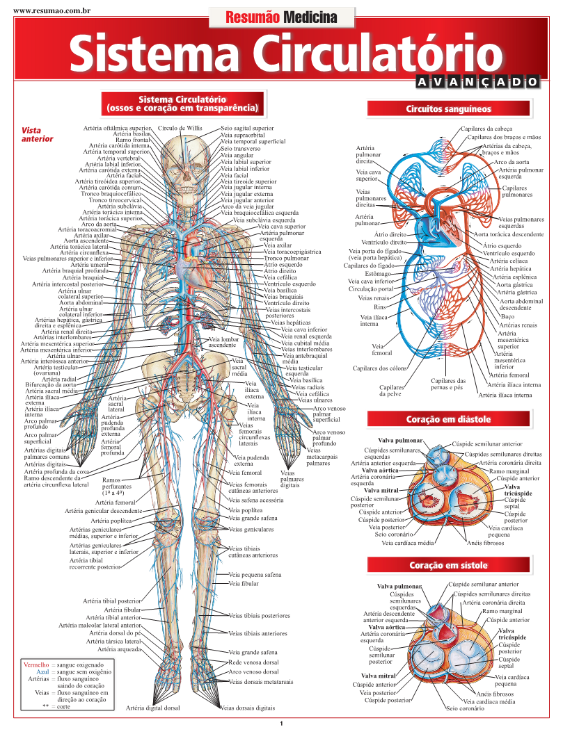 Todos os detalhes do sistema circulatório no corpo humano, em 26 imagens bastante detalhadas, com as indicações anatômicas. Os circuitos sanguíneos, o coração (em sístole e em diástole), o sistema venoso e o sistema arterial. Detalhes das veias e artérias do tórax, pescoço e cabeça, dos vasos sanguíneos, do cérebro e muito mais. | Autores: Vincent Perez